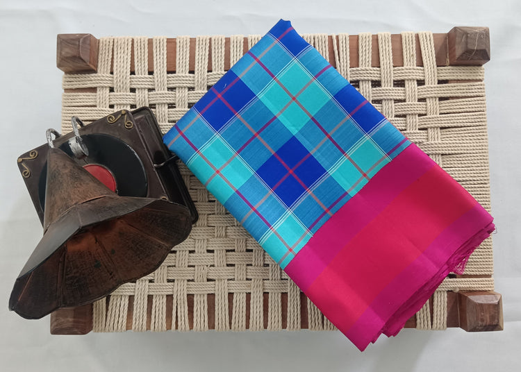 Madras checked silk sarees are a vibrant and traditional type of Indian attire known for their distinctive checkered pattern and luxurious silk fabric. Here is a detailed description of these sarees: