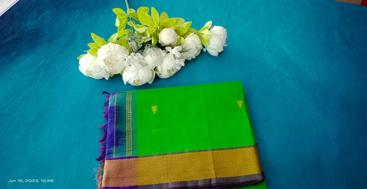 NVLCTB006-Linen cotton Temple border saree Green Color