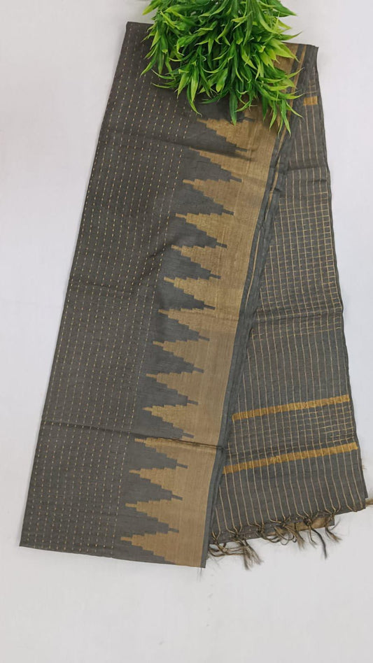 NVLCTB009-Linen cotton Temple border saree Grey Color