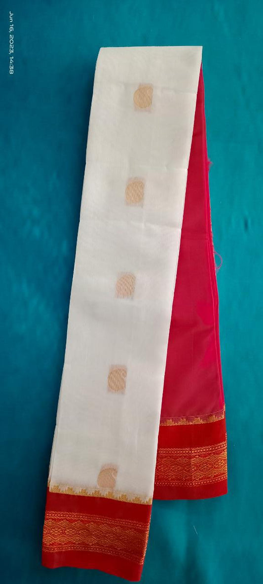 NVLCTB008-Linen cotton Temple border saree Red Color