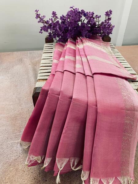 1. Handwoven Splendor: Every weave tells a story of skilled craftsmanship. Our Baby Pink Handloom Silk Saree is a testament to the meticulous artistry of handloom weavers, ensuring a piece that is not just a garment but a work of art.