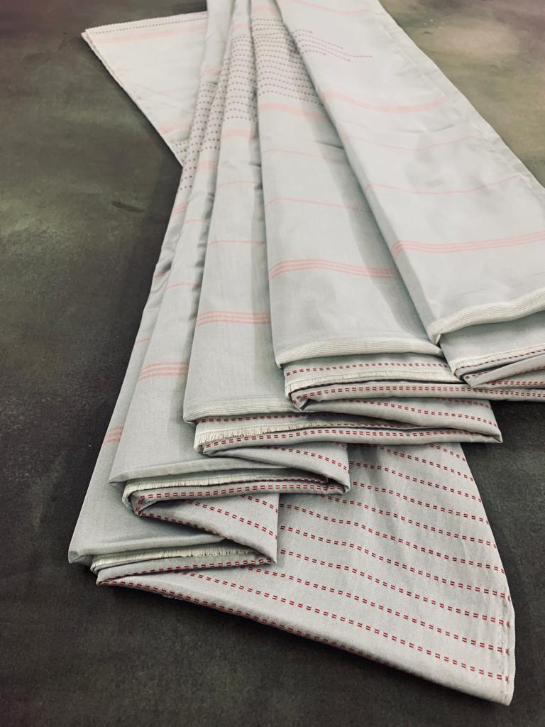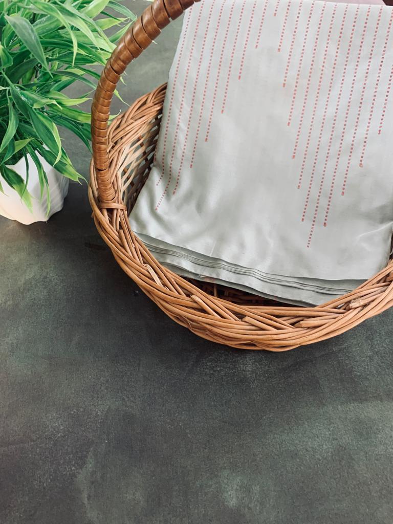 Noil Silk Temple Border Saree light grey color