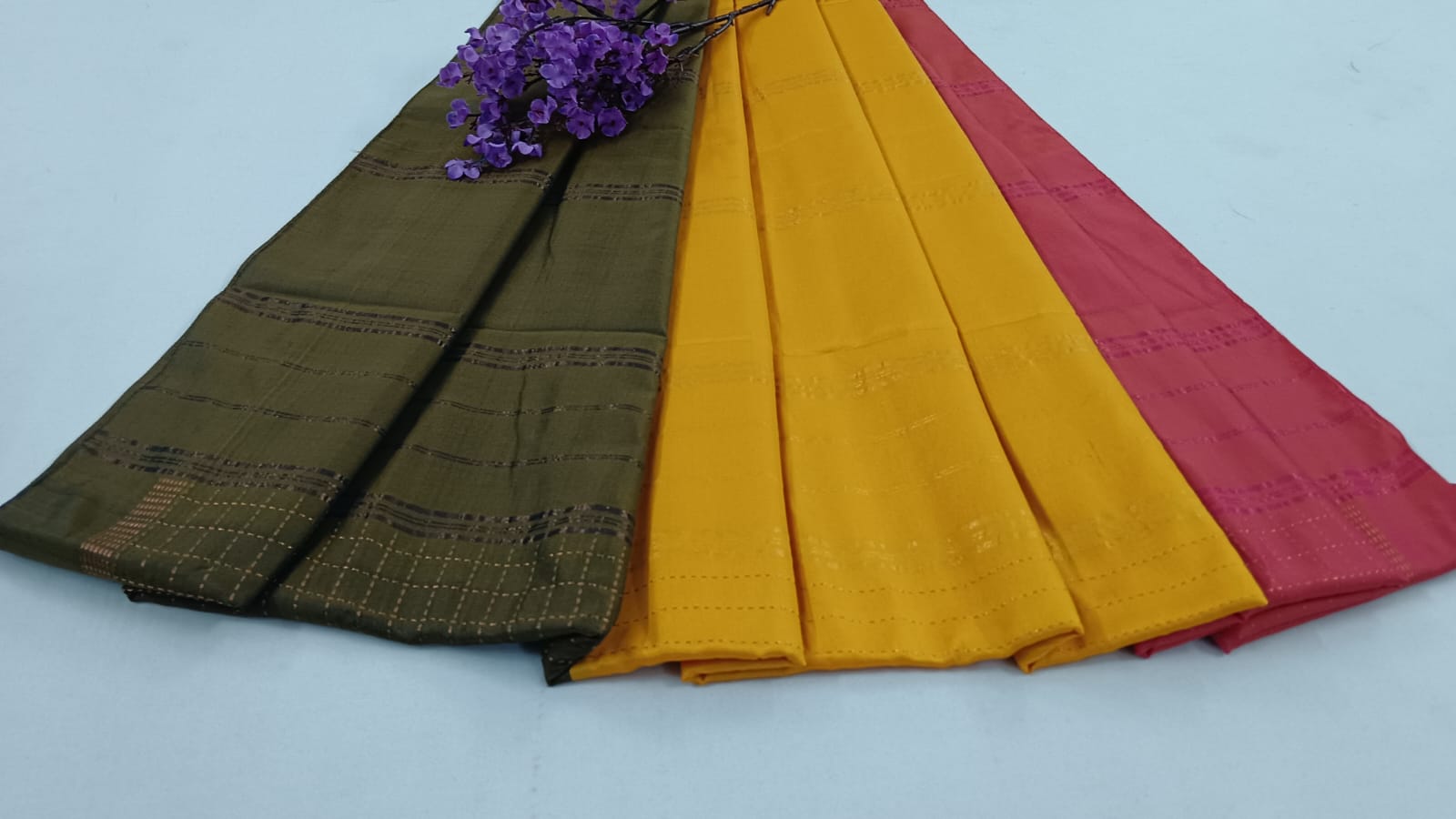 NSTR1032-NSTR1033-Noil silk Checked border saree mutard yellow and olive green color