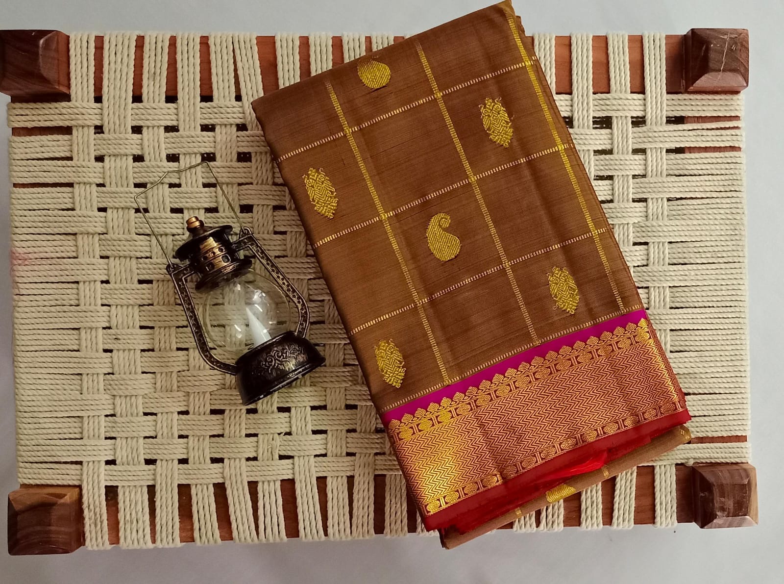 NVBS004 -Kaki and meron colour saree