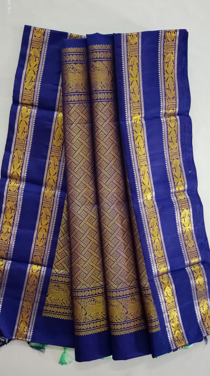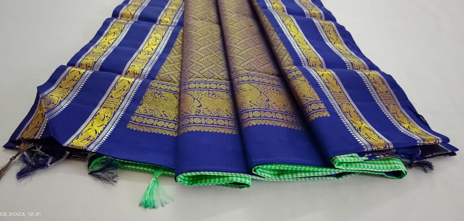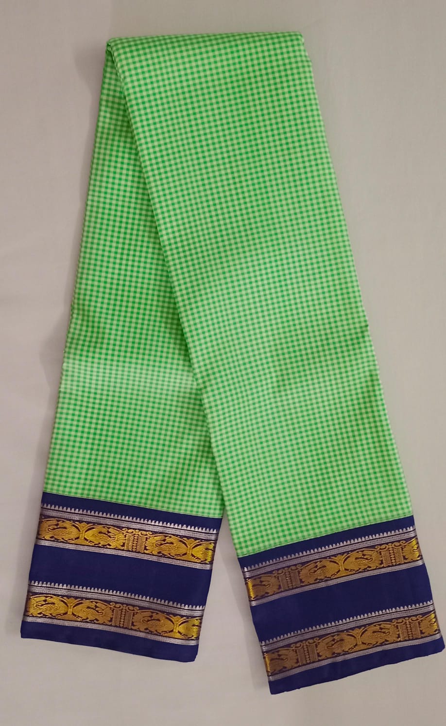 NVBS009-Checked light green and dark blue color saree