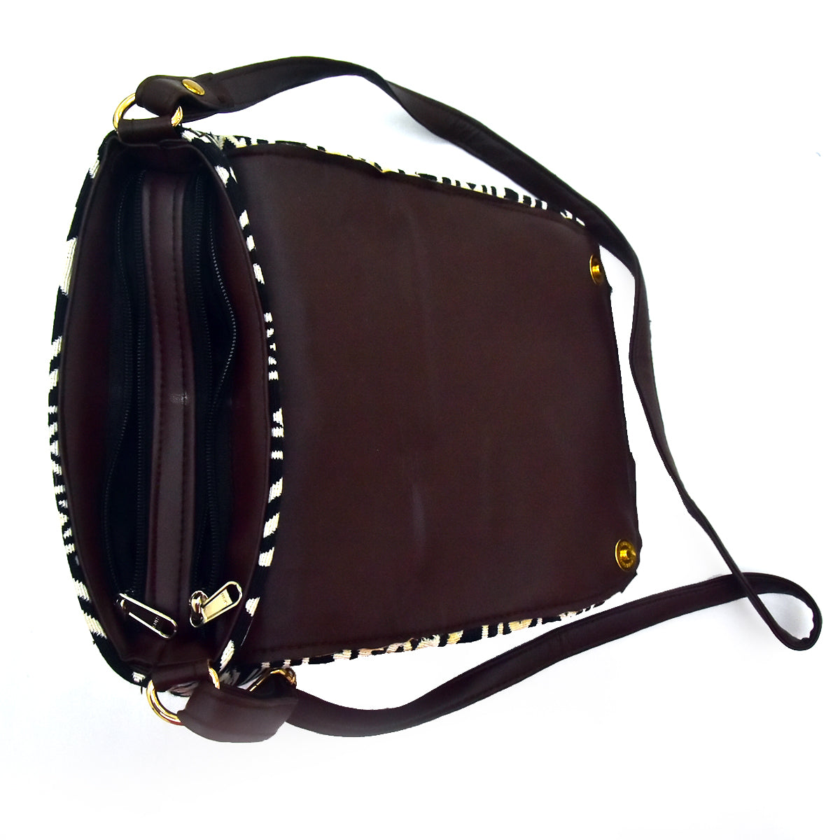 Make a lasting impression with the perfect balance of style and functionality. Order your "Monochrome Chic" Black & White Jacquard Cloth and Leather Sling Bag now and redefine your accessory game with a touch of classic flair.