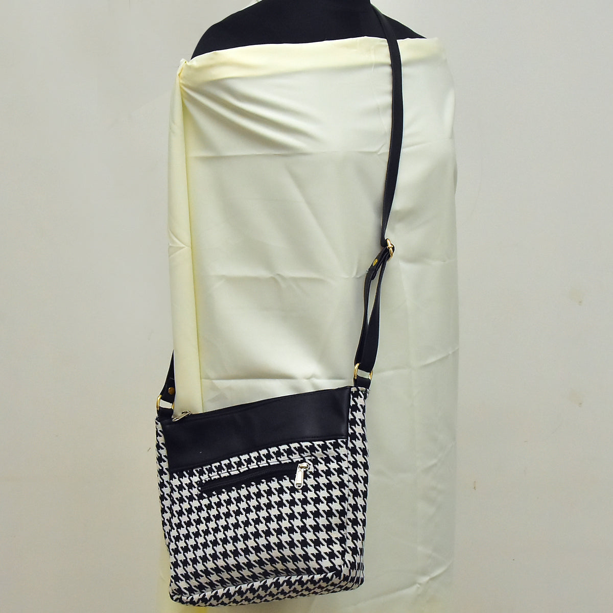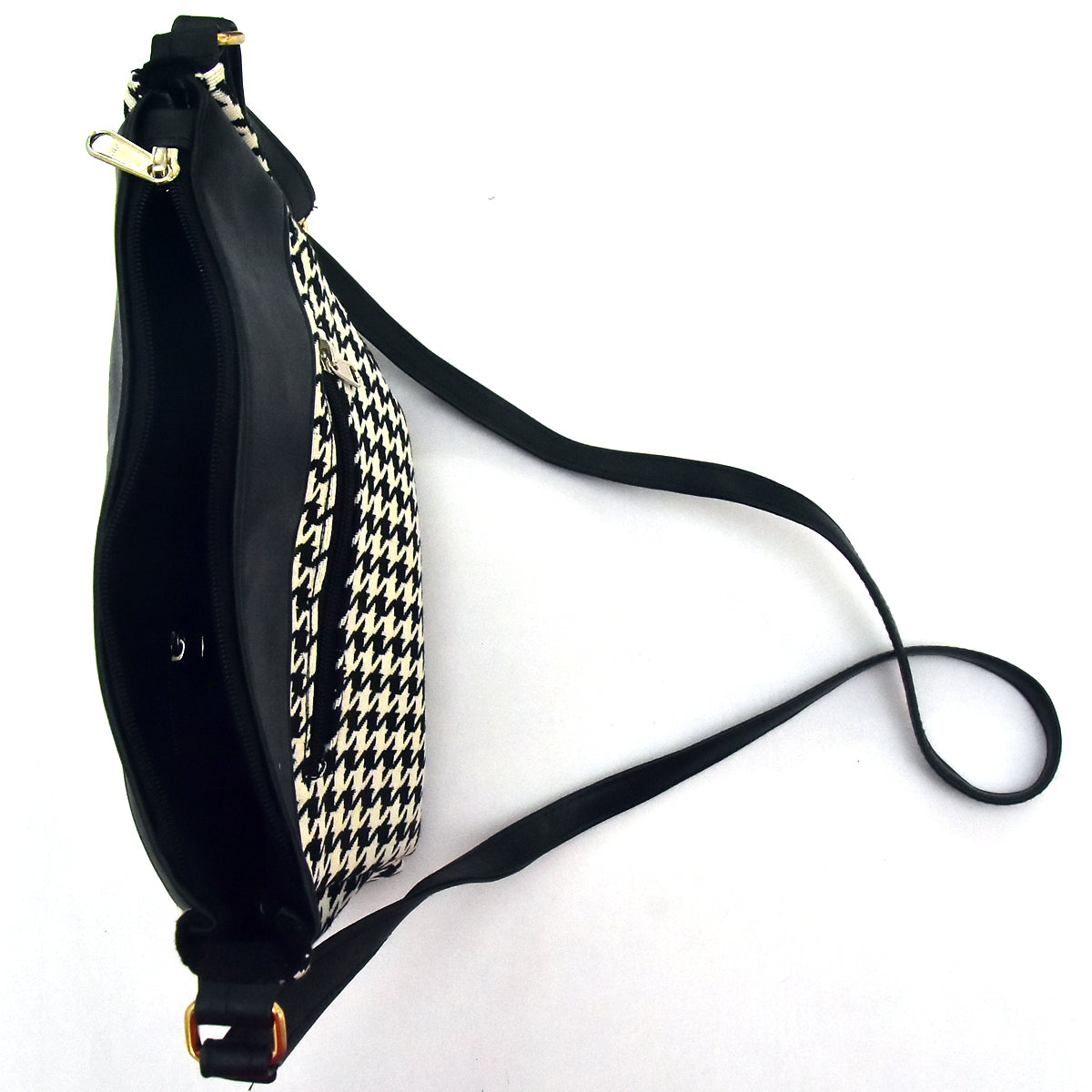 Make a lasting impression with the perfect balance of style and functionality. Order your "Monochrome Elegance" Black & White Jacquard Cloth and Leather Sling Bag now and elevate your accessory game to a new level of sophistication!